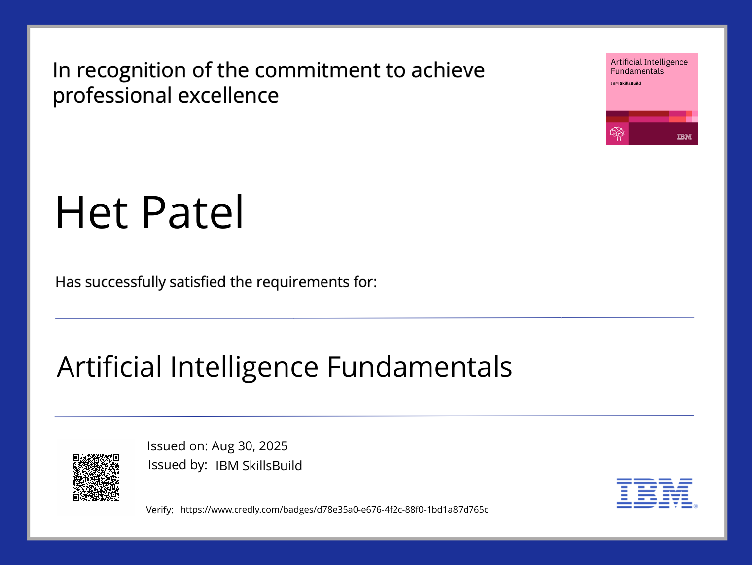 Comprehensive certification covering AI methodologies, tools, and best practices from IBM.